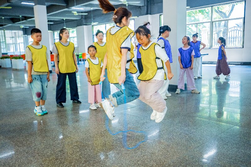 綁定的不僅是步伐,更是心跳的頻率。家長與孩子共同挑戰(zhàn)一分鐘跳繩,即使繩子甩得歪歪扭扭,大人小孩開懷的笑聲已是最動聽的樂章。