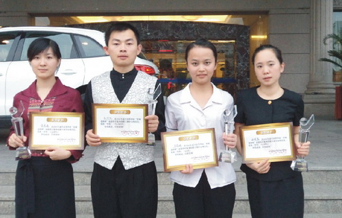 2011年8月16日,在嘉興富悅大酒店舉行的第四屆“禾城老酒杯”旅游飯店服務(wù)技能大賽圓滿落下了帷幕。本次大賽共有24支參賽隊(duì)伍,88名參賽者。華城集團(tuán)下屬圣雷克大酒店共派四名選手參與。比賽內(nèi)容包括理論考試、口試和技能操作三個(gè)部分,對飯店業(yè)員工的綜合素質(zhì)進(jìn)行了全面考核。最終,我店四名員工不負(fù)眾望,獲得了團(tuán)體第二名的好成績。在個(gè)人單項(xiàng)比賽中,孫金躍獲調(diào)酒一等獎,金美娟獲西餐擺臺二等獎,汪佩霞、唐莉娜分別在中餐擺臺、中式鋪床中獲得三等獎。
