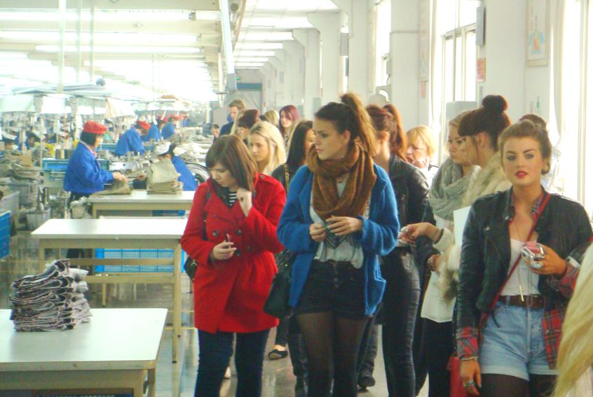 中午十二點半,外國學生們由五位老師帶隊來到華城集團總部,通過在會議室系統(tǒng)地觀看企業(yè)介紹、學習華城文化逐步了解公司概況,隨后在現(xiàn)場翻譯華城制衣業(yè)務部范金平的帶領下,外國學生們參觀了制衣各生產車間,在參觀過程中,范金平同時向他們介紹了企業(yè)發(fā)展的現(xiàn)狀及前景,并就企業(yè)文化在企業(yè)發(fā)展中的作用做了初步介紹,共同探討了生產過程中完善服裝生產工序及管理模式給企業(yè)帶來的效益。通過現(xiàn)場觀摩和講解,讓外國學生對華城“以人為本”的管理模式、先進的生產設備、科學的生產流程安排以及良好的工作環(huán)境贊不絕口。