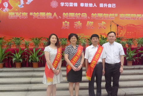 啟動儀式上,嘉興市委常委、宣傳部長、市文明委副主任陳越強介紹了嘉興市“關(guān)愛他人、關(guān)愛社會、關(guān)愛自然”志愿服務(wù)活動實施方案!瓣P(guān)愛他人、關(guān)愛社會、關(guān)愛自然”志愿服務(wù)隊授旗儀式同時舉行。嘉興市54家企事業(yè)單位向中國志愿服務(wù)基金會捐款110.7萬元。我公司黨總支副書記沈文英代表集團公司參加了此次啟動儀式,同時我公司以及集團公司旗下的平湖圣雷克大酒店也是這次啟動儀式上向中國志愿服務(wù)基金會捐款企業(yè)之一。