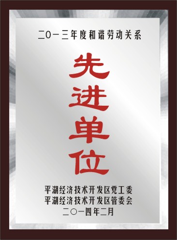 平湖經(jīng)濟(jì)技術(shù)開發(fā)區(qū)和諧勞動關(guān)系先進(jìn)單位: