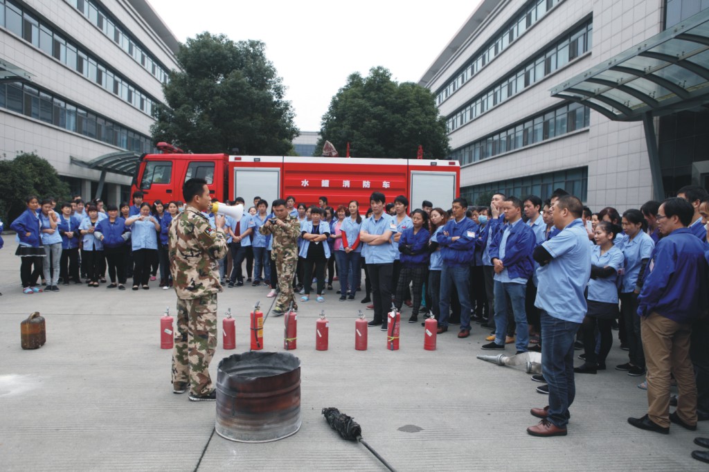 演練分為兩個(gè)階段,第一階段為模擬災(zāi)情出現(xiàn),員工緊急疏散。下午一點(diǎn)鐘,面對(duì)著突發(fā)“災(zāi)情”,員工們緊張有序地離開各自車位,從各安全通道疏散到安全地帶。第二階段為消防器材使用講解和演練。當(dāng)員工們從車間疏散來到原水洗廠前面空地時(shí),那里已經(jīng)準(zhǔn)備好了各種消防器材,公司特邀的開發(fā)區(qū)消防大隊(duì)官兵為大家進(jìn)行了消防器材使用講解,并實(shí)際指導(dǎo)員工進(jìn)行消防器材運(yùn)用。在消防隊(duì)員的講解和帶動(dòng)下,員工們都熱情高漲,積極學(xué)習(xí),認(rèn)真操作,學(xué)到了不少知識(shí)。