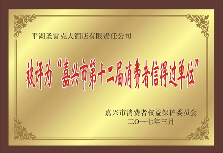 平湖圣雷克大酒店榮獲“嘉興市第十二屆消費者信得過單位”等榮譽稱號
