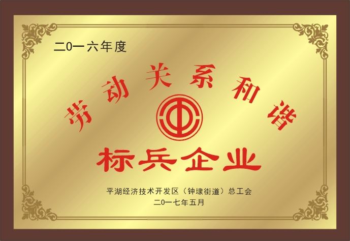 我集團(tuán)公司下屬平湖華城茂麓制衣有限公司被授予 “2016年度勞動(dòng)關(guān)系和諧標(biāo)兵企業(yè)”榮譽(yù)稱號(hào);