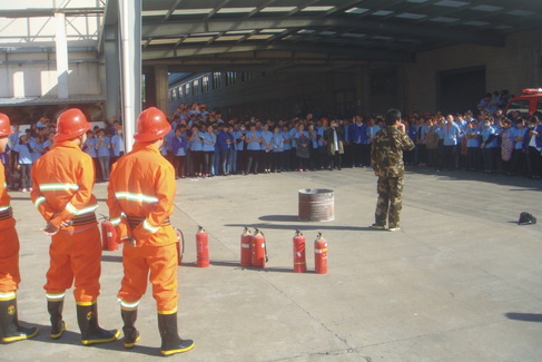 假想災情出現(xiàn),緊急疏散,最后集合到指定地點。對這套應急流程,員工們已經(jīng)駕輕就熟,一會兒,油桶滅火現(xiàn)場便圍滿了人。等員工全部集中后,公司特別邀請的開發(fā)區(qū)消防大隊專職消防員,為大家介紹了消防、逃生、救災、避難等基本常識,并在現(xiàn)場手把手教大家如何運用滅火器滅火,以及消防水帶的使用方法。很多員工都學以致用,積極上陣,體驗了一把用滅火器進行油桶滅火的親身感受,這樣更有利于消防知識的理解和消防器材的運用。