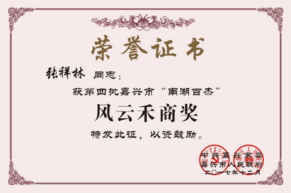 當(dāng)前位置:首頁 > 華城動態(tài) 日前,嘉興市委、 市政府發(fā)文公布了嘉興市第四批“南湖百杰”優(yōu)秀人才名單,我公司董事長張祥林榮獲“南湖百杰”風(fēng)云禾商獎。
