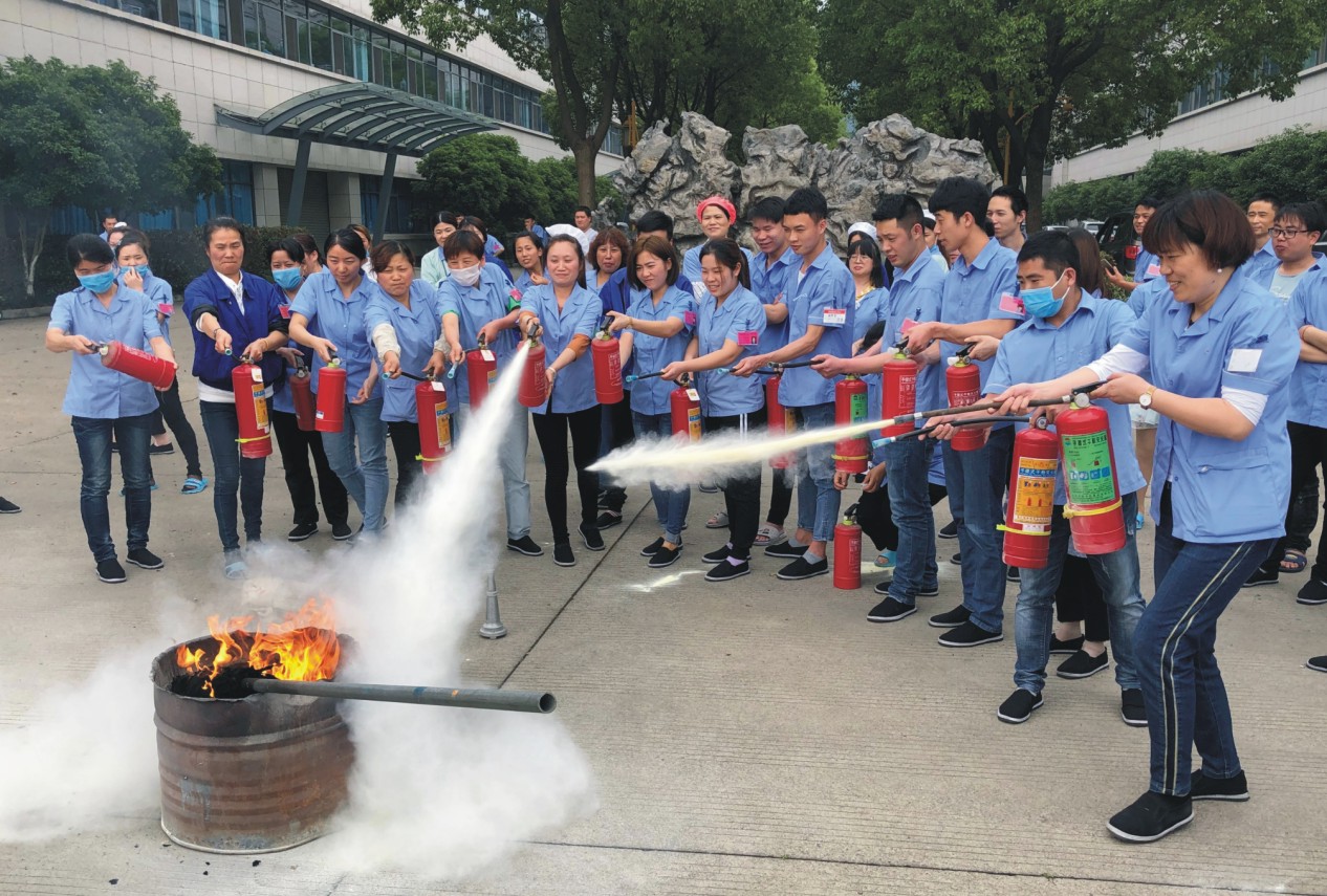 演習在集團各分廠、各部門人員的共同配合下,開展得十分順利。當假想災情突然出現(xiàn),警鈴響起,各車間廣大員工迅速反映,積極配合,按逃生路線有序疏散,幾分鐘之內(nèi)便撤離完畢。隨后到達指定地點學習消防知識,觀摩消防器材的應用。各公司的演習均由華城集團首席安全官吳剛毅負責傳授消防安全知識,在傳授過程中,吳剛毅結合消防器材的運用進行了詳細講解和示范操作,讓員工加深了解消防知識,掌握消防器材的運用。不少員工親身體驗了滅火器的操作和使用過程,也進一步懂得了應急環(huán)境中的緊急疏散、安全自救方法和技巧。