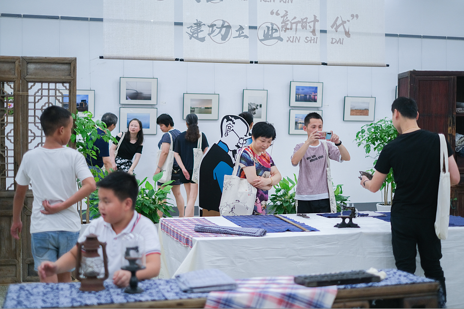 此次攝影展為沉浸式展覽,運用紡織服裝老物件,營造了老裁縫店的場景,極具年代感,參觀者仿佛置身于真實的老裁縫店內(nèi),可以量體裁衣、挑選布匹、坐在老式縫紉機上拍照打卡等,特別的展示方式和互動體驗帶給觀眾不一樣的感官享受。