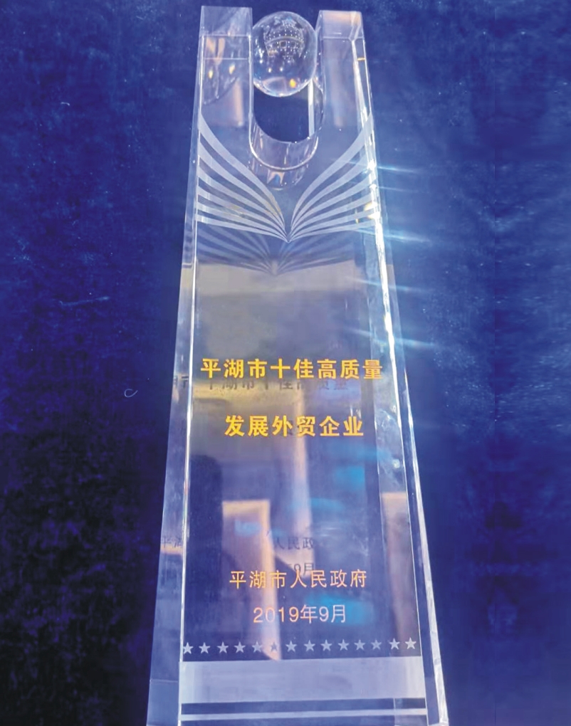 丹桂飄香秋意濃,金風(fēng)送爽喜報(bào)來(lái)。在剛剛舉行的2019中國(guó)•平湖西瓜燈文化節(jié)開(kāi)幕式暨投資貿(mào)易洽談會(huì)上,平湖市委副書(shū)記、市長(zhǎng)仲旭東對(duì)“平湖市十佳高質(zhì)量發(fā)展外資企業(yè)”、“平湖市十佳高質(zhì)量發(fā)展外貿(mào)企業(yè)”進(jìn)行了頒獎(jiǎng)。華城茂麓制衣有限公司喜獲“平湖市十佳高質(zhì)量發(fā)展外貿(mào)企業(yè)”榮譽(yù)稱號(hào)。