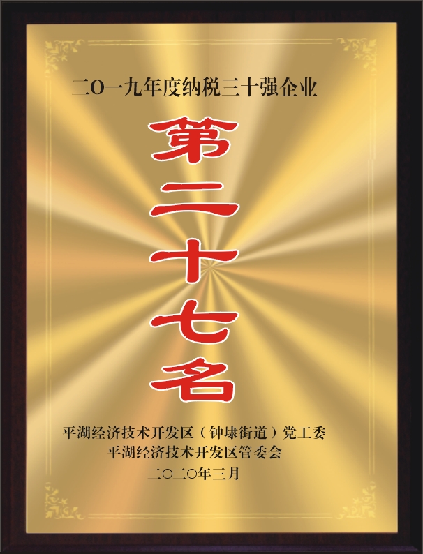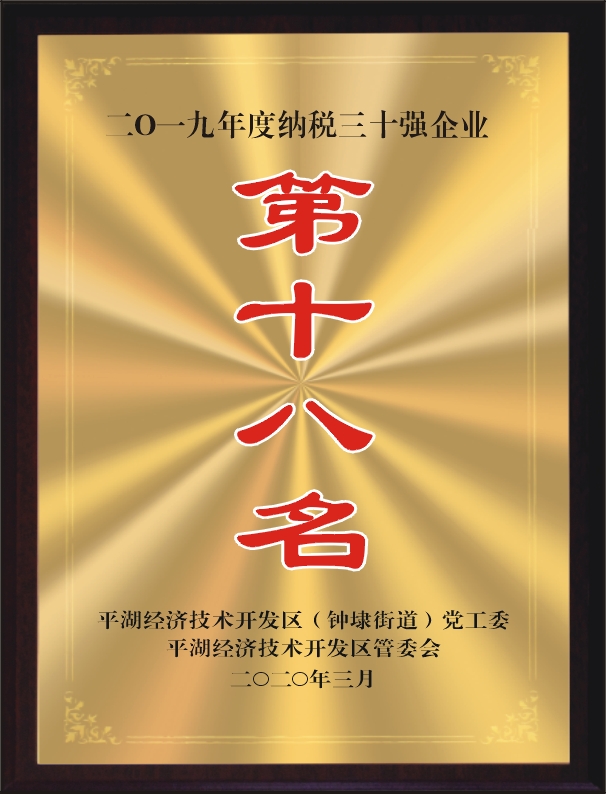 平湖市華城制衣股份有限公司位列平湖經(jīng)濟技術開發(fā)區(qū)“2019年度納稅30強企業(yè)”第27名。