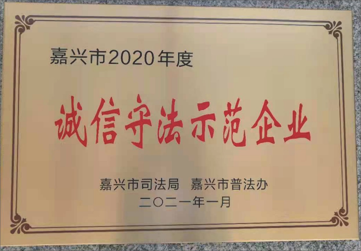 公司一貫堅持誠信立企、依法經(jīng)營的原則,注重勞動保障誠信建設、扎實企業(yè)生產(chǎn)經(jīng)營管理、強化質(zhì)量管理與質(zhì)量誠信、廣泛開展法治宣傳教育、堅持企業(yè)文化建設,憑借著良好經(jīng)營與誠信守法已榮獲多項殊榮。此次獲命名為嘉興市“誠信守法示范企業(yè)”,公司將再接再厲,依法經(jīng)營,著重推進企業(yè)規(guī)范化、制度化管理,為社會營造崇尚法治、誠實守信的良好氛圍。