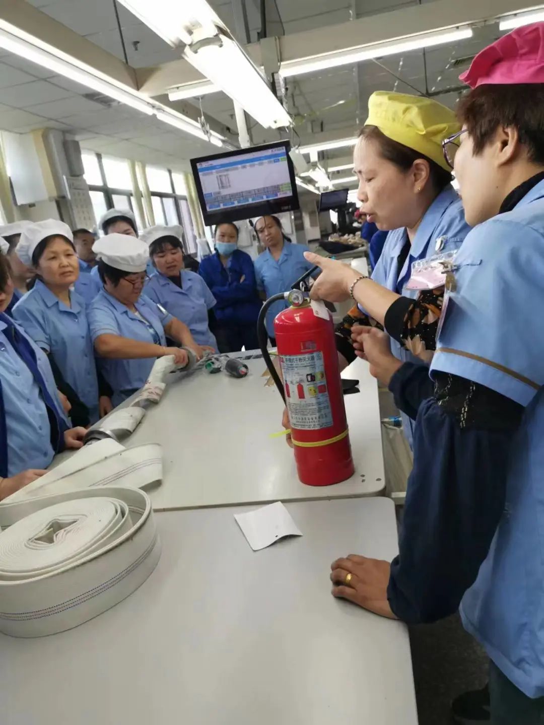 在車間里,利用開晨會(huì)的時(shí)間,每個(gè)小組由組長培訓(xùn),如何正確使用水槍及滅火器,并且讓員工參與到培訓(xùn)中。通過手把手的培訓(xùn),以及實(shí)操,讓每個(gè)員工對(duì)水槍及滅火器的使用熟練掌握。