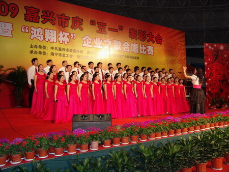 為進一步深入開展嘉興市企業(yè)職工文化建設(shè)示范工程活動,扎實推進全市企業(yè)職工文化建設(shè),助推全市經(jīng)濟轉(zhuǎn)型升級創(chuàng)新發(fā)展,經(jīng)嘉興市委宣傳部、市總工會、市文廣局研究決定,嘉興市企業(yè)歌曲征集評選活動和“鴻翔杯”企業(yè)之歌合唱比賽于2009年4月28日在海寧市體育中心舉行。我公司《華城之歌》合唱團通過各隊員的共同努力,克服在排練過程中的種種困難,在比賽現(xiàn)場發(fā)揮出優(yōu)異的成績,所唱的《華城之歌》和《解放區(qū)的天》二首歌曲受到了現(xiàn)場觀眾的陣陣掌聲和評委的肯定,在此次比賽中獲得第一名。企業(yè)歌曲是體現(xiàn)企業(yè)文化和職工文化的重要載體,通過廣泛傳唱企業(yè)歌曲,展示企業(yè)形象,凝聚職工力量。這次《華城之歌》第一次在嘉興市級比賽中開唱就受到大家的好評,也是反映了我們?nèi)A城人的精神面貌,同時也展現(xiàn)了我們?nèi)A城集團的企業(yè)形象。