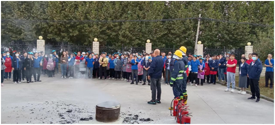 所有人員在辦公樓前集合,各車間、班組清點人數(shù)。企管李偉偉進行消防安全知識講解,如何預(yù)防火災(zāi)、撲救初起火災(zāi),面對突發(fā)事件的自救、他救能力,如何正確使用滅火器等注意事項,然后員工進行滅火實際操作。