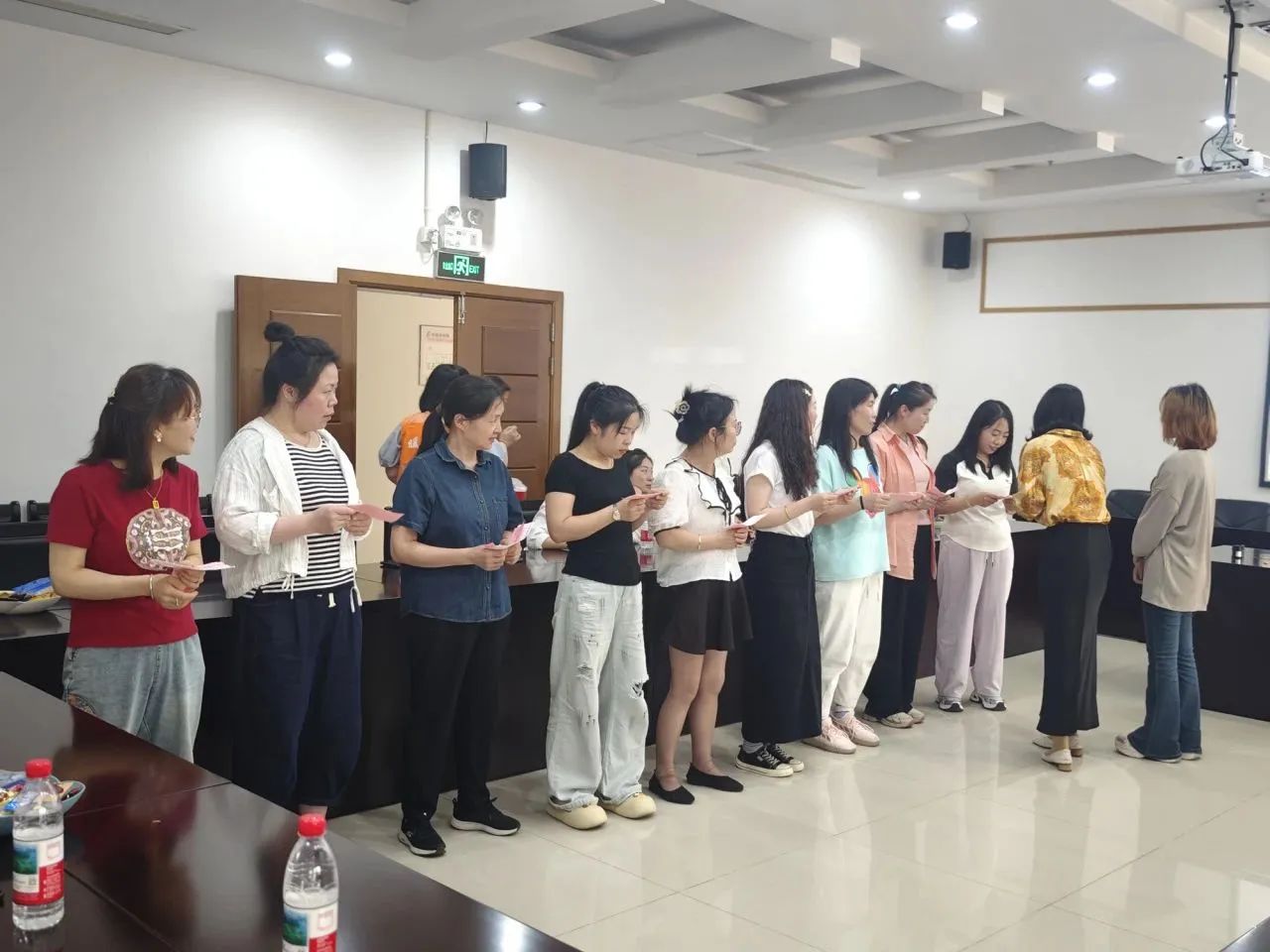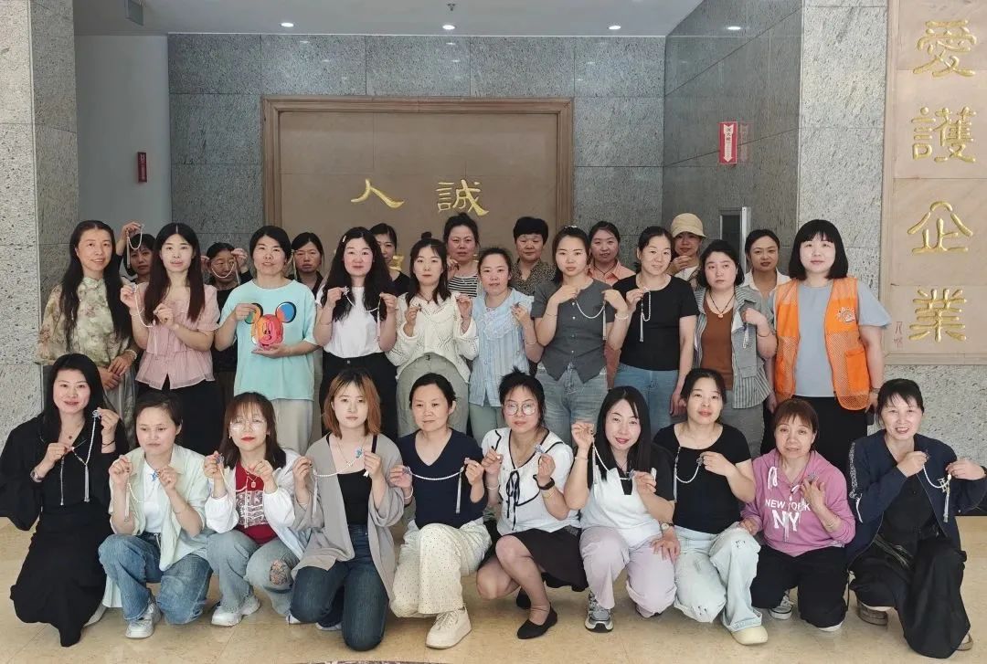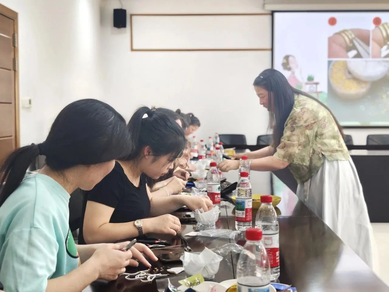 在精彩的講座結(jié)束之后,緊接著是一場沉浸于古典韻味的“非遺壓襟”體驗活動,讓企業(yè)員工們仿佛穿越回古代,領(lǐng)略傳統(tǒng)文化的非凡魅力;顒右潦,佳子老師向員工們深入講解了“壓襟”這一非物質(zhì)文化遺產(chǎn)的起源和制作特色。在制作中,通過佳子老師的悉心指導,大家從選擇材料的順序、構(gòu)思設(shè)計到組裝,每一步都充滿了樂趣和挑戰(zhàn)。