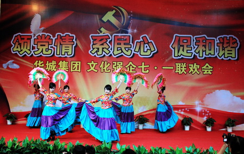 講話結(jié)束后,開始了豐盛的晚宴,在氣勢磅礴的合唱《華城之歌》歌聲中,拉開了聯(lián)歡會文藝表演的序幕。大家邊吃邊欣賞由各分廠自排、自導(dǎo)、自演的精彩節(jié)目:華城新居民員工們唱響了《春天的故事》,唱出了華城人的精神;華城茂麓的配樂詩朗誦《永遠跟您走》,體現(xiàn)了華城人的堅定信念;華城衣歌路用手語節(jié)目《感恩的心》,表達了對黨和企業(yè)的感恩;華城制衣楊平英等人獻上舞蹈《今天是你的生日》,舞出了新生活的美好……眾多節(jié)目,精彩紛呈。紅歌的激情,感恩的赤誠,詩的壯志,舞的優(yōu)美,不但體現(xiàn)出華城人生活在一個和諧的盛世,工作在一個強大的企業(yè),更體現(xiàn)出了華城人圍繞著“團結(jié)、勤奮、奉獻”的企業(yè)精神,學(xué)習(xí)、應(yīng)用、推廣企業(yè)文化,取得了良好的成績,廣大員工的綜合素質(zhì)得到了普遍的提升。